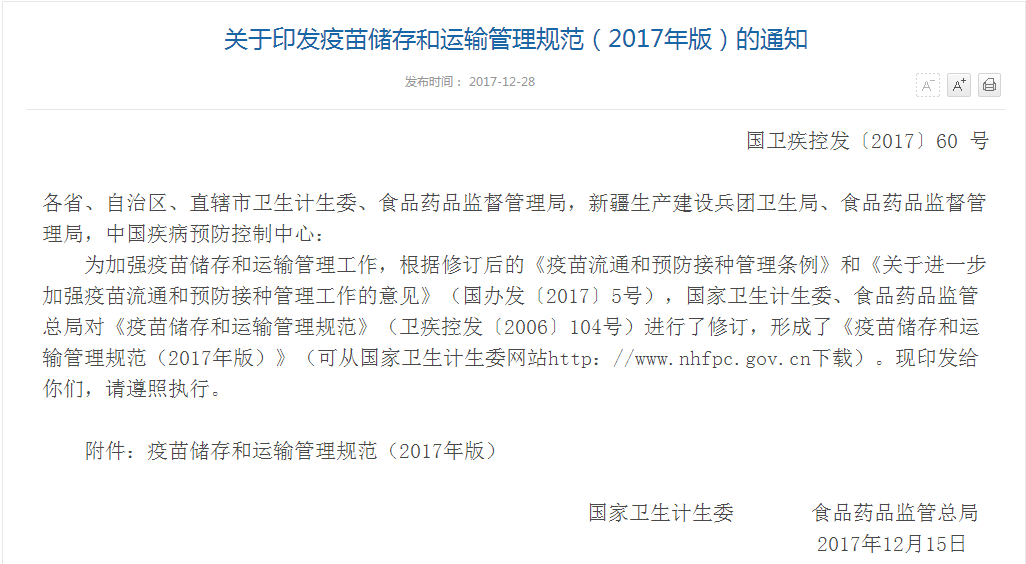 關于印發疫苗儲存和運輸管理規范(2017年版)的通知