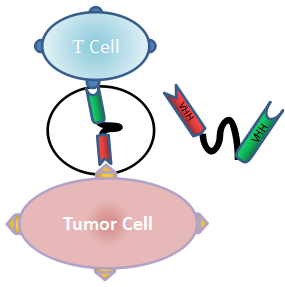 康眾生物采用噬菌體展示及外周血流式細胞篩選兩種技術,從免疫羊駝或駱駝體內篩選分離納米抗體分子,研發用于腫瘤治療的雙(多)特異性納米抗體藥物。康眾生物致力于研發基于納米抗體的T細胞銜接抗體(Nanobody Bispecific T-cell Engager, nanoBiTE), 識別T細胞的抗體及識別腫瘤抗體的抗體均采用納米抗體分子,是分子量最小的雙特異性抗體,只有普通抗體分子的1/5, 預計能夠帶來更強的殺死腫瘤細胞活性,用于多種血液及實體腫瘤的治療。