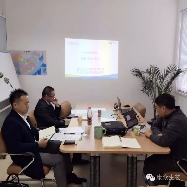 今日,浙江省嘉興市人民政府北京聯絡處[嘉興(北京)發展促進會]吳根軍主任(秘書長),項目處樊穎助理一行到訪康眾(北京)生物科技有限公司。公司總經理李福勝博士及林兆新副總經理參加了座談。