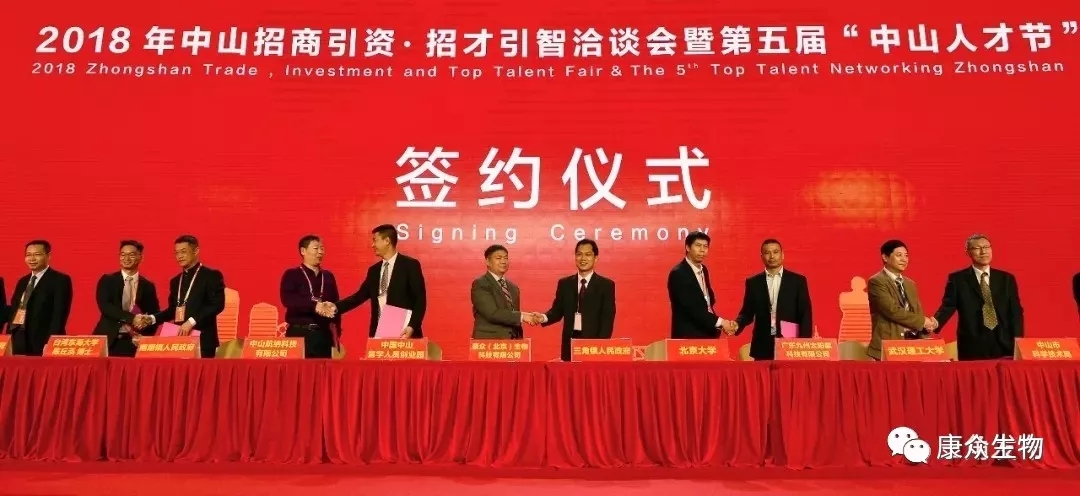 今天上午,2018年中山招商引資·招才引智洽談會(huì)暨第五屆中山人才節(jié)開(kāi)幕式,在中山博覽中心綜合展廳主會(huì)場(chǎng)舉行。三角鎮(zhèn)黨委書(shū)記黃澤科代表三角鎮(zhèn)人民政府與康眾(北京)生物科技有限公司進(jìn)行簽約。